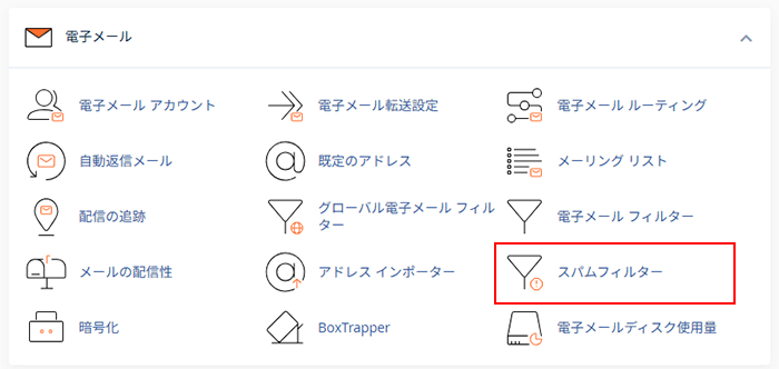 2.「電子メール」の「スパムフィルター」をクリックします。
