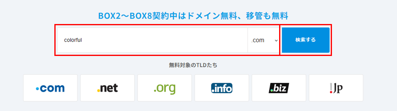 BOX2~8プランをご契約いただくと、特典としてドメインの新規取得・移管費が無料となり、その更新費もサーバー契約期間中は永久無料となります。
