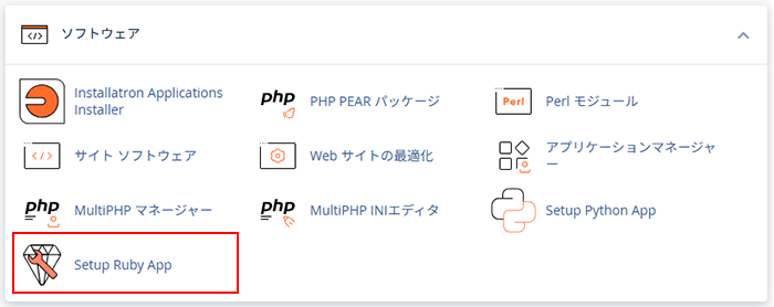 2.「ソフトウェア」の「Setup Ruby App」をクリックします。