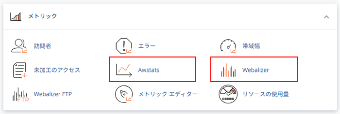 2.「メトリック」内にアクセス解析ツールがありますので、お好みのツールをクリックして下さい。