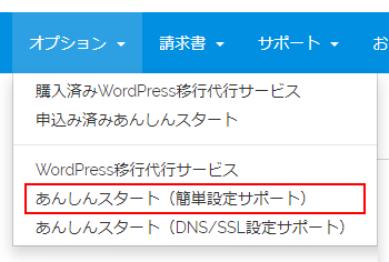 ここでは、あんしんスタートの「簡単設定サポート」と「DNS / SSL設定サポート」のお申込み方法をご案内します。