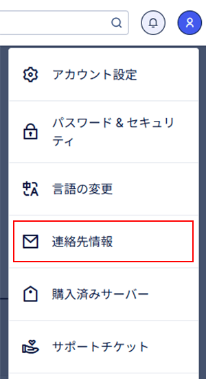 2.画面右上のユーザーアイコンをクリックし、「連絡先情報」をクリックします。