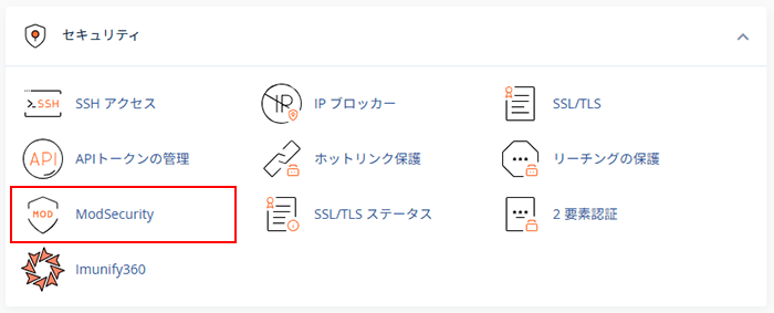 2.「セキュリティ」の「ModSecurity」をクリックします。